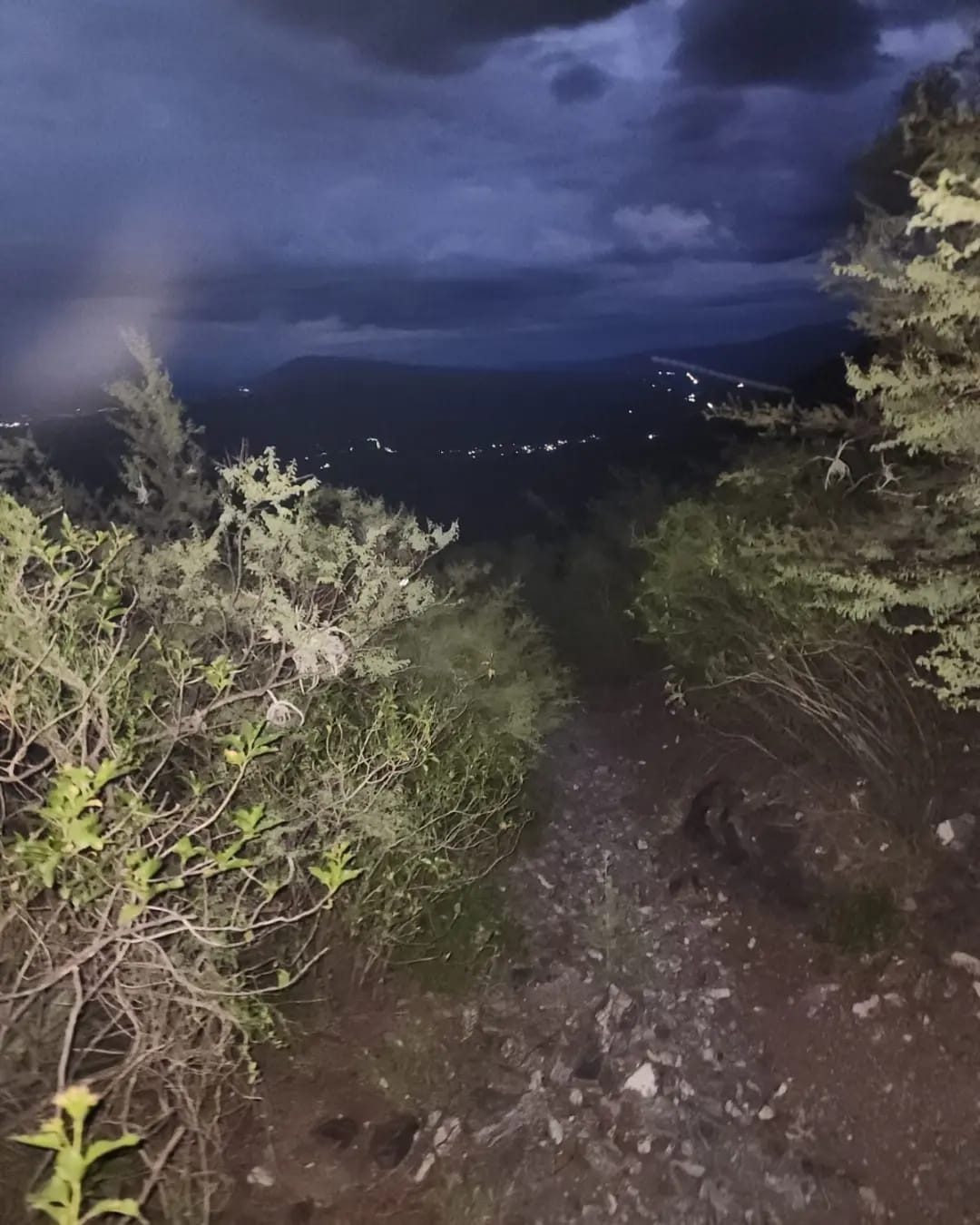 Los trabajos terminan a la noche y los operarios contemplan las luces de la ciudad.