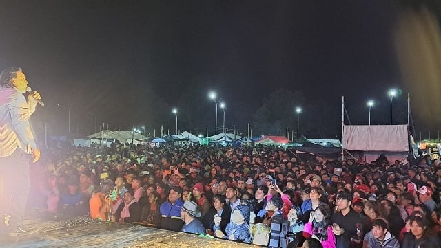 El popular cantor muy querido por los santamarianos dio todo en el escenario y dejó el clima propicio para la actuación del grupo LLOKALLAS que llegó con un repertorio que incluyó carnavalitos, sayas y tinkus que hicieron las delicias de los presentes con un estilo parecido al de Los Tekis.