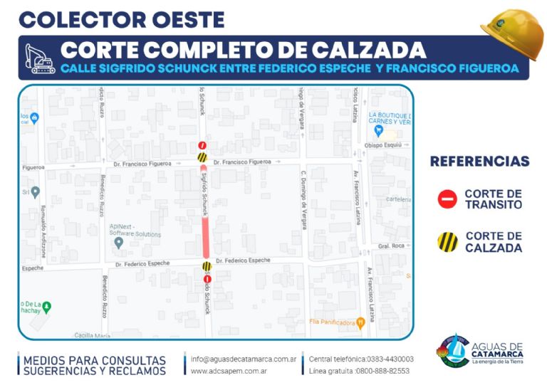 Por estas tareas habrá interrupción completa del tránsito en las intersecciones de Federico Espeche y Francisco Figueroa hasta el día viernes 3 de marzo.