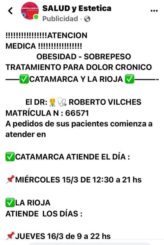 A través de la red social Facebook, el Colegio Médico calificó a la situación de "muy grave" y recordó que el sujeto ya fue denunciado en Fiscalía General. A continuación el comunicado de la institución colegiada y la imagen difundida sobre la actividad promocionada por el denunciado.