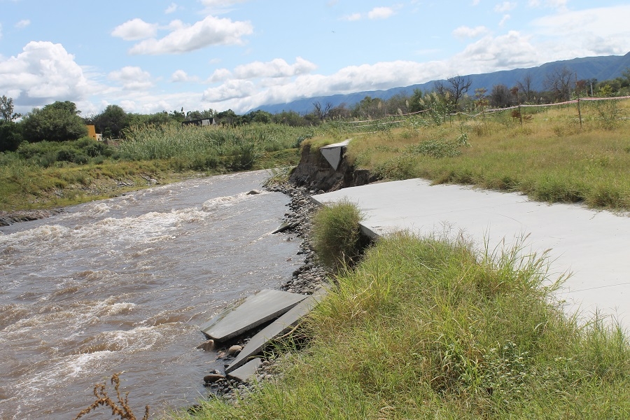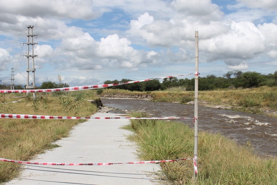 En el sector, identificado como Zona de Recreación, parte del hormigón desplegado a modo de sendas, sobre las márgenes orientales del mencionado cauce fue, literalmente, arrasada por las aguas, en una extensión de unos 80 metros aproximadamente.