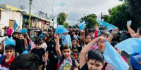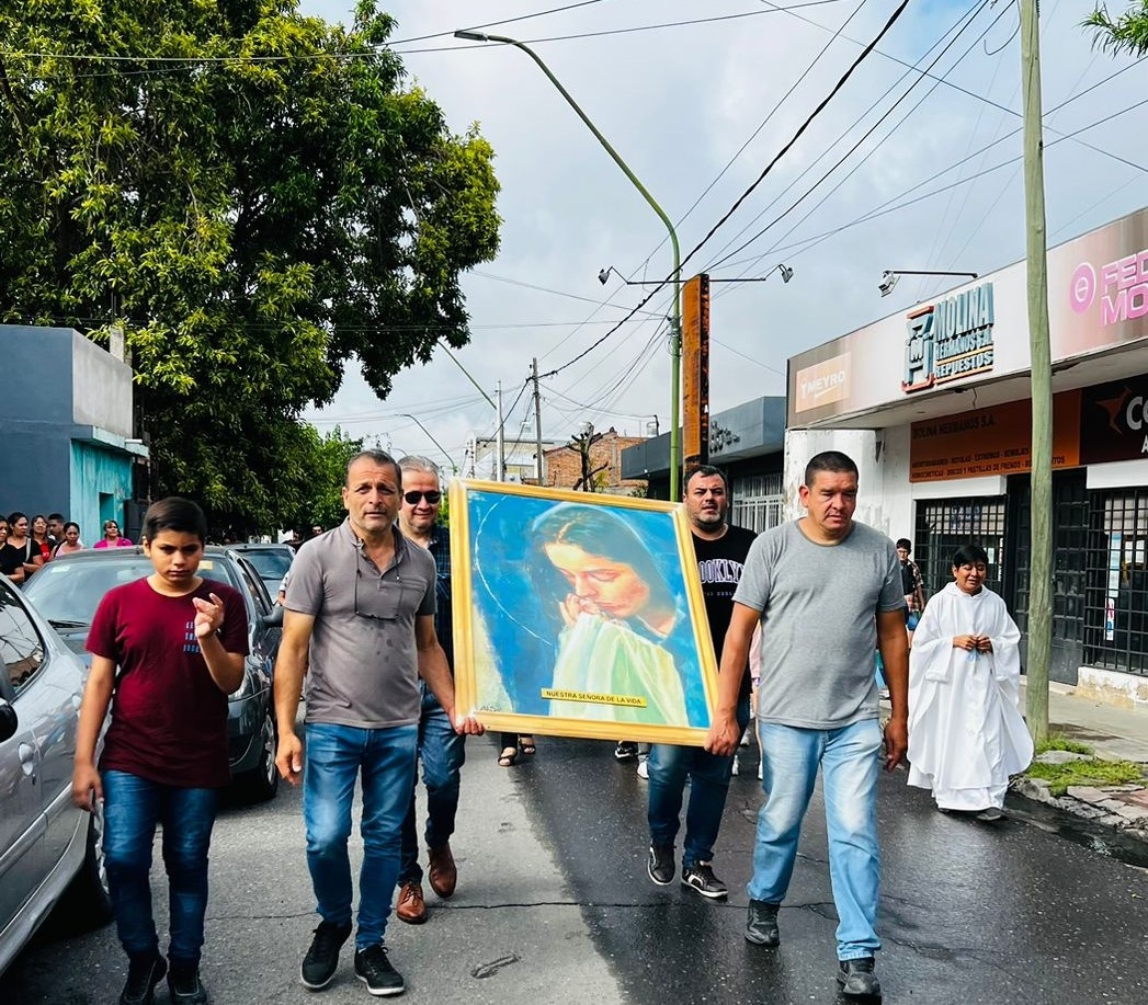 Alrededor de las 10.00, los chicos comenzaron a congregarse en el predio parroquial, especialmente los que se están preparando para recibir los Sacramentos de la Comunión y la Confirmación, para luego salir en procesión. La caminata abarcó las calles Zurita, 25 de Mayo, Mate de Luna, avenida Alem, regresando por Zurita, y contó con la participación de los padres que llevaron el cuadro con la imagen de Nuestra Señora de la Vida.