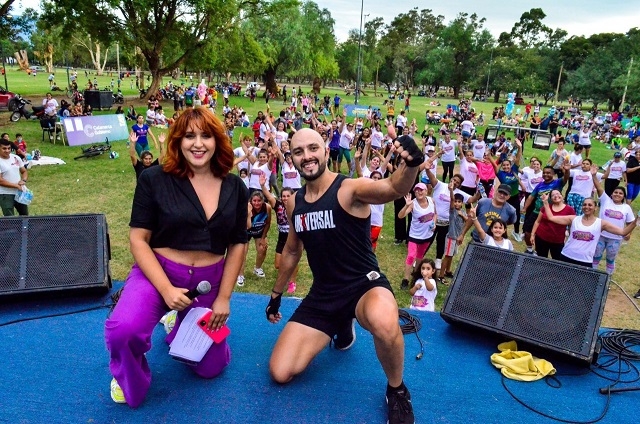 La tarde comenzó con una caminata alrededor del óvalo del parque, a cargo de María Nelida Rodríguez. A continuación, llegó la clase de aerobox, dictadas por Martín Pacheco y las clases de ritmos con Noelia Alive.