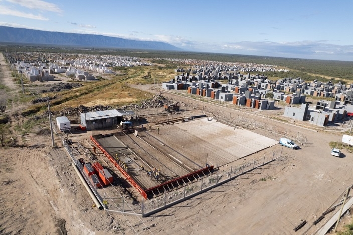Se avanza en la etapa de hormigonado de platea en la cisterna que se encuentra ubicada en Av. Ojo de Agua que tendrá una capacidad de 2000 metros cúbicos y llevará beneficios a vecinos de barrio 1000 viviendas y alrededores, también a barrio Antinaco de manera indirecta.