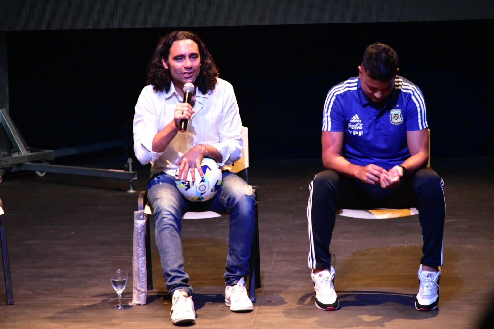 Durante la charla, Sorín estuvo acompañado por el catamarqueño Julio César Bayón, integrante de la selección campeona en Qatar, quien recordó emocionado haber sido parte del aquel plantel que quedará en el recuerdo de todos los argentinos.