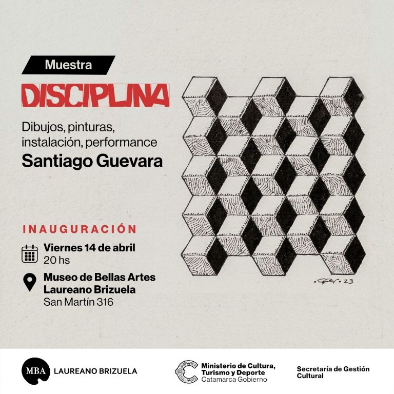 Disciplina es una muestra de técnicas mixtas donde el artista expone pinturas, dibujos, instalaciones, arte objetos, performances. “En estos últimos lenguajes soy bastante nuevo -dice Santiago Guevara- así que va a ser una experiencia bastante reveladora, porque yo vengo del dibujo, dibujé casi toda mi vida, y hace unos años que estoy trabajando con pintura, también con instalación y arte objeto, que son lenguajes a los que me acerqué recientemente”.