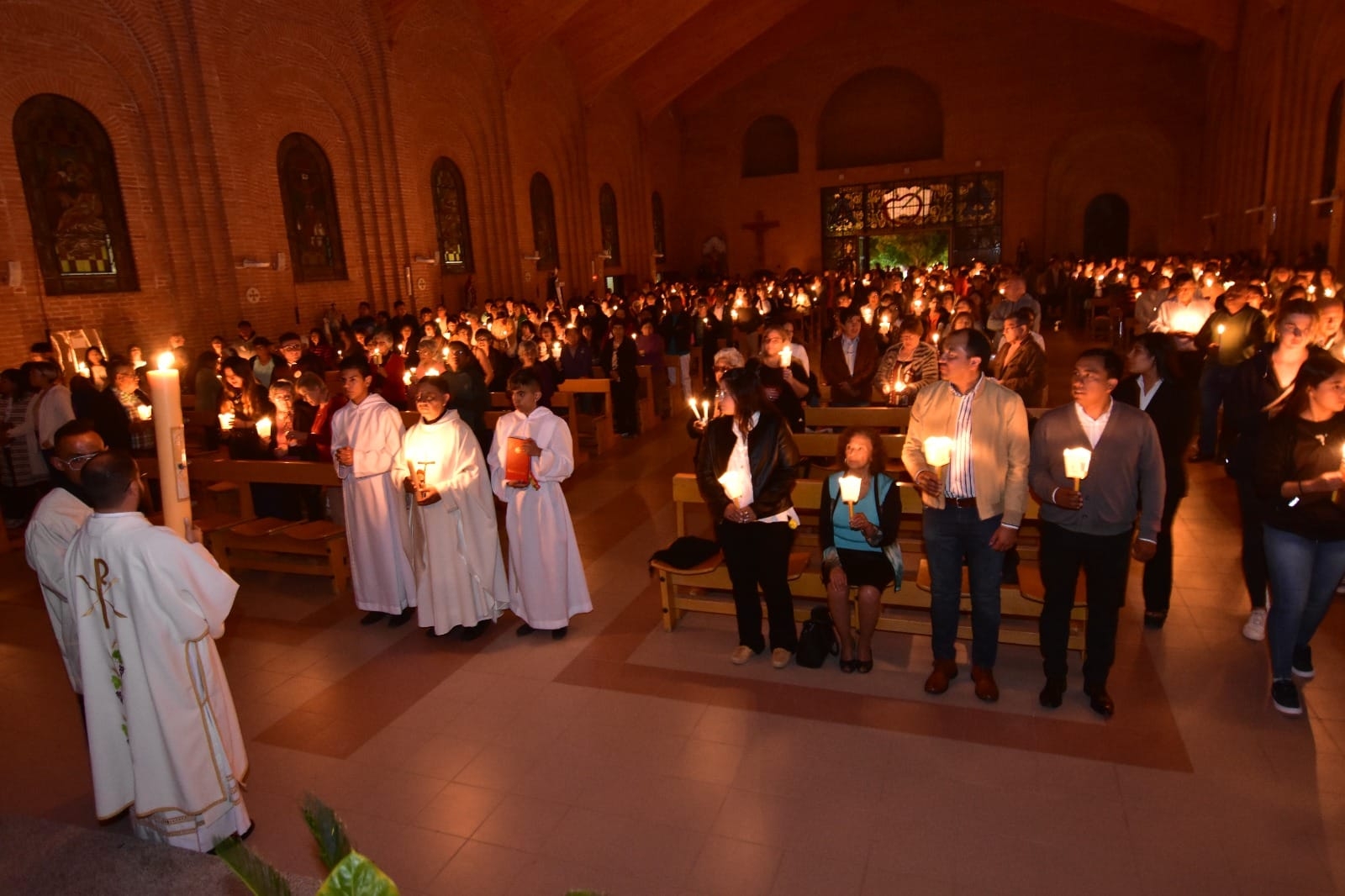 En la noche del sábado, en la Iglesia Nuestra Sra. de la Candelaria, se llevó a cabo la solemne e Vigilia Pascual, presidida por el padre Guillermo Medina.