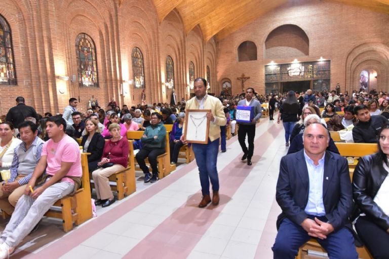 Por su parte, el Sr. Intendente, hizo entrega, como ofrenda, un cuadro con un rosario bendecido por el Papa Francisco, para la Iglesia Nstra. Sra. de la Candelaria. Días pasados, realizó la entrega a las capillas de las localidades de nuestro distrito.