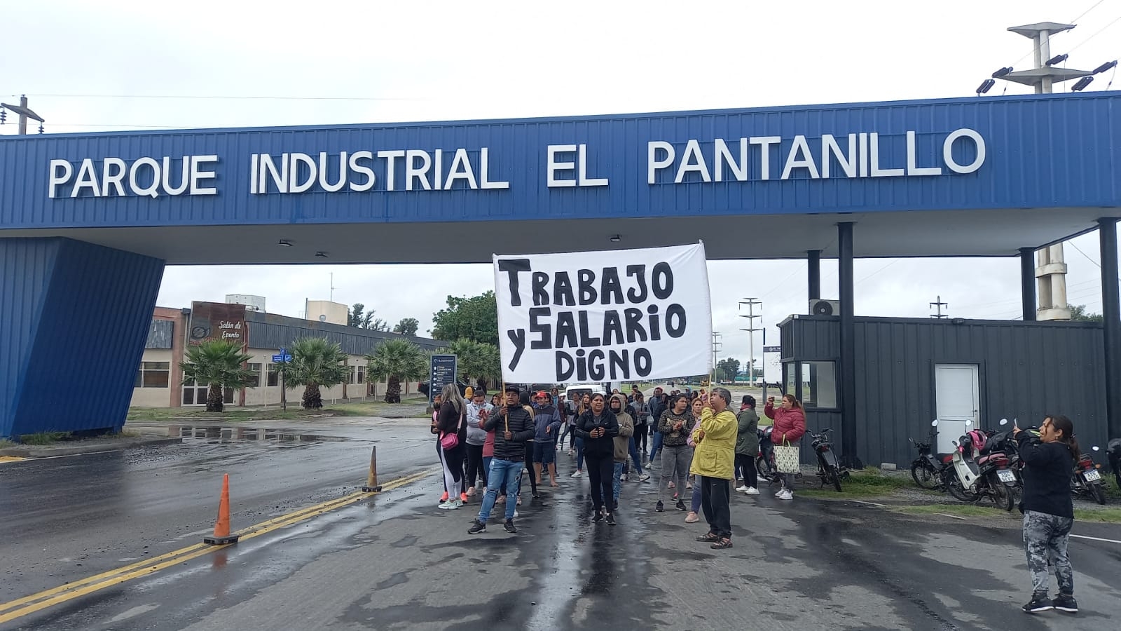 La protesta se realizó en el marco de la visita de funcionarios nacionales que llegaron al lugar para la inauguración de una fábrica de medias.