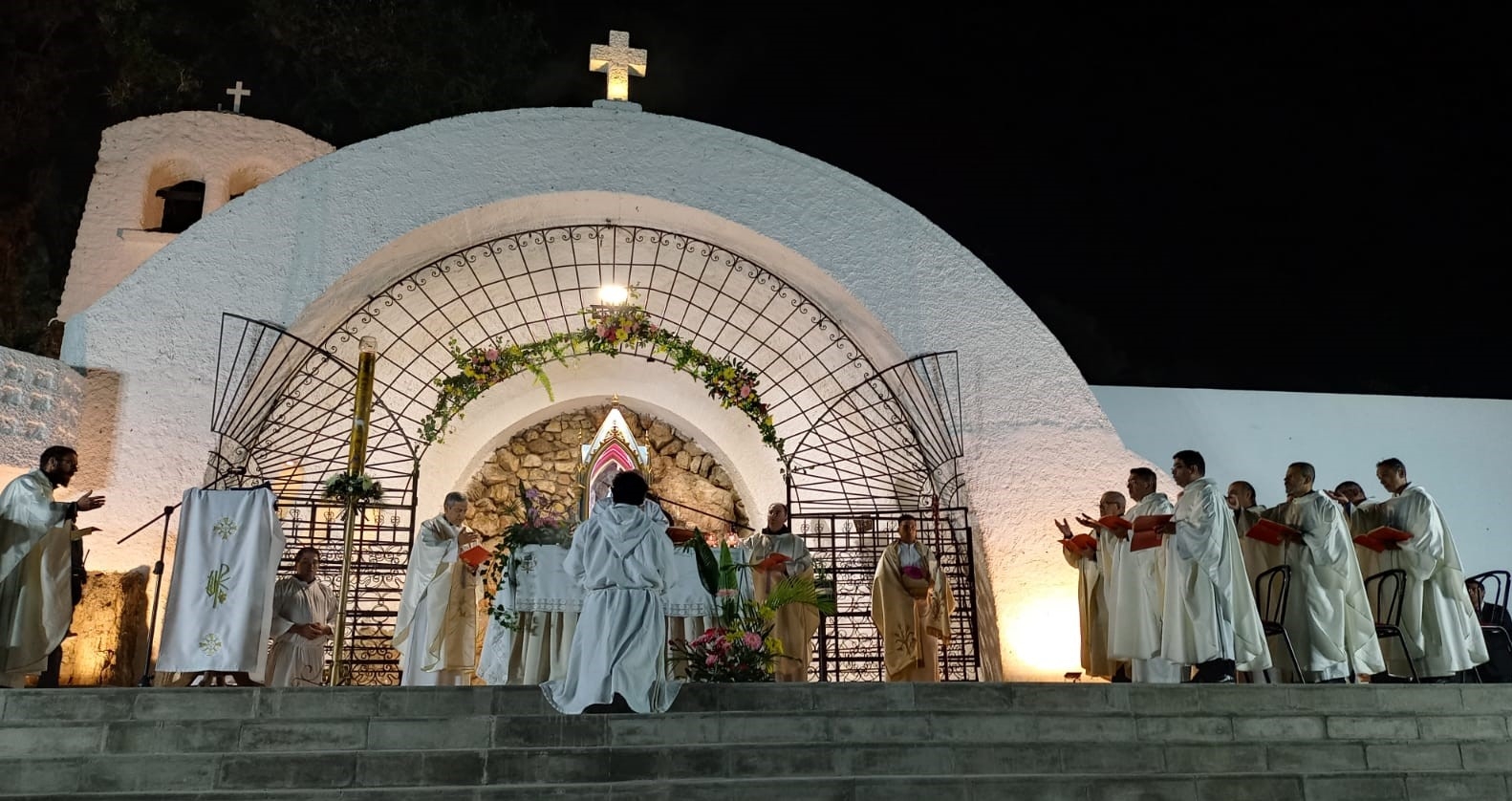 Allí, en medio del paisaje montañoso donde Ella quiso quedarse, se celebró la Santa Misa de reapertura de este espacio de oración y encuentro, que fue presidida por el obispo diocesano, Mons. Luis Urbanc, y concelebrada por Mons. José Antonio Díaz y Mons. Darío Quintana, obispos de Concepción y de Cafayate, respectivamente, junto con sacerdotes del clero catamarqueño, entre ellos el vicario general, P. Julio Murúa; el rector de la Catedral Basílica y Santuario mariano, P. Gustavo Flores; el responsable de la Animación Pastoral de la Gruta, P. Santiago Granillo, y otros presbíteros visitantes, que llegaron a honrar a la Patrona del Noroeste Argentino. En esta Eucaristía rindieron su homenaje los medios de comunicación social.