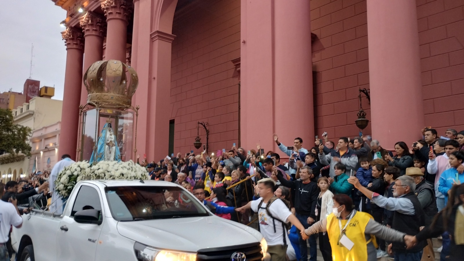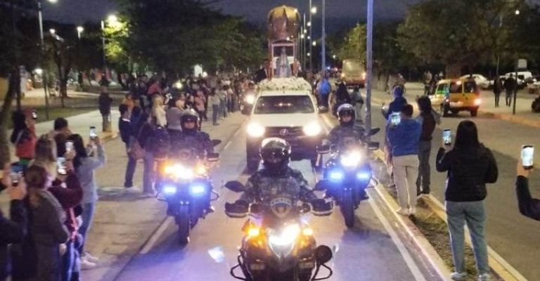 A lo largo del recorrido de unos siete kilómetros, la Imagen cuatro veces centenaria fue saludada mientras avanzaba hasta el lugar del hallazgo, donde la esperaba una gran cantidad de devotos y peregrinos.