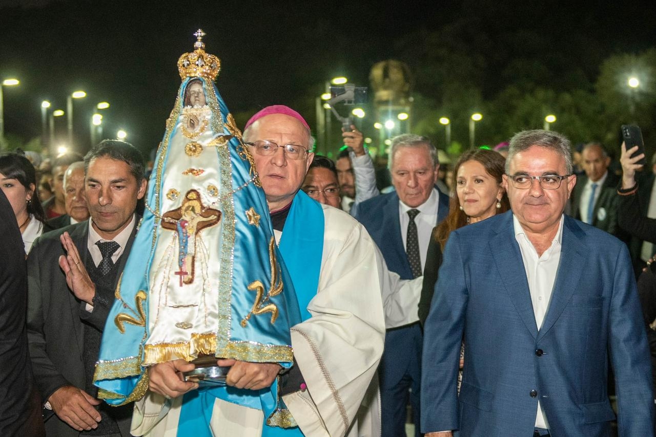 Una gran fiesta de la fe mariana se vivió en la tarde del sábado 15 de abril, con la Bajada de la Madre del Valle desde el Camarín hasta el Presbiterio, marcando el inicio al Septenario, en el marco del 132° aniversario de la Coronación de la Sagrada Imagen.