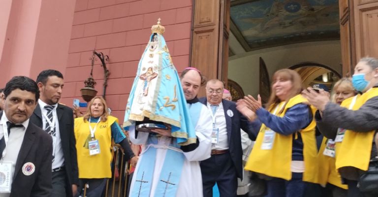 Una gran cantidad de fieles y devotos desbordó el templo para participar de esta tradicional ceremonia. Con unción rezaron los misterios del Santo Rosario y luego acompañaron a la Madre, llevada en brazos por Mons. Quintana, hasta la urna ubicada en el Paseo de la Fe.