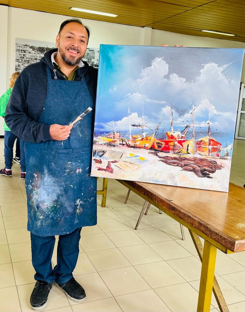 "Trabajamos el día sábado a contrareloj, se pinta tres días, pero ese día trabaje desde la nueve de la mañana hasta la tarde, teníamos que representar el puerto, los barcos, la fauna, todo. Trabajamos a contrarreloj para llegar a tiempo. El domingo fue una gran sorpresa cuando obtuve el primer premio", explicó el docente.