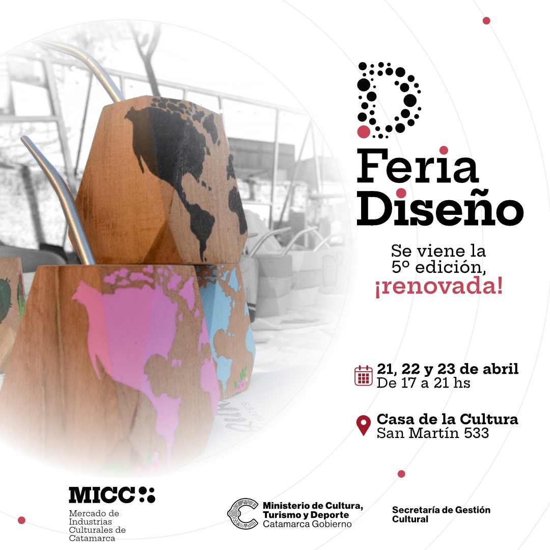 Organizada por la Secretaría de Gestión Cultural del Ministerio de Cultura, Turismo y Deporte, la feria tendrá prendas textiles, indumentaria, accesorios y objetos de diseño, piezas de cerámica, esculturas, obras de arte de distintos formatos y productos gastronómicos envasados gourmet de origen catamarqueño.