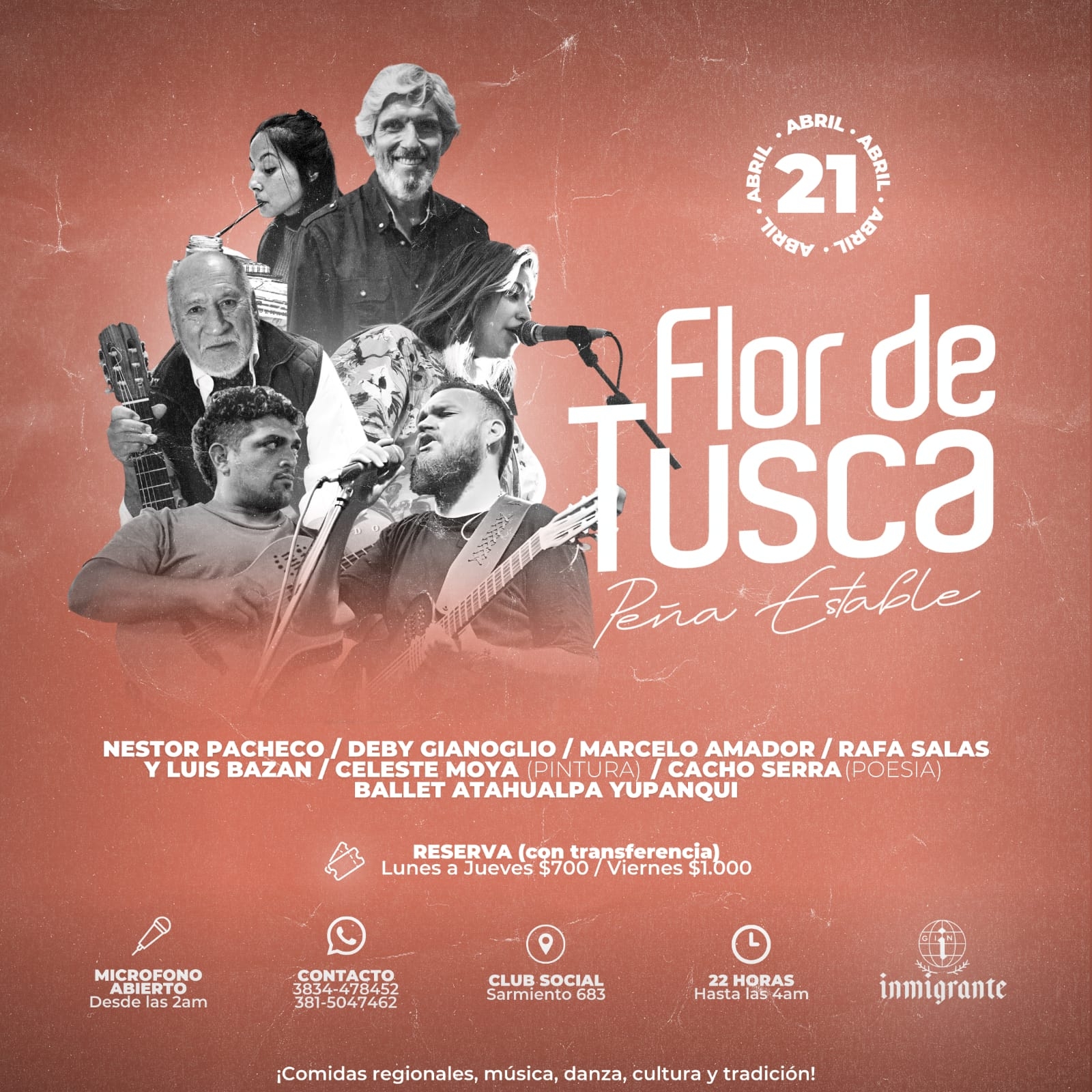 Ubicada en el Club Social, en Sarmiento 683, planta alta, frente a la plaza principal de la Capital Catamarqueña, Flor de Tusca ofrecerá comidas regionales, bebidas y una cartelera de artistas locales para que los visitantes puedan disfrutar del folclore y el arte catamarqueño.