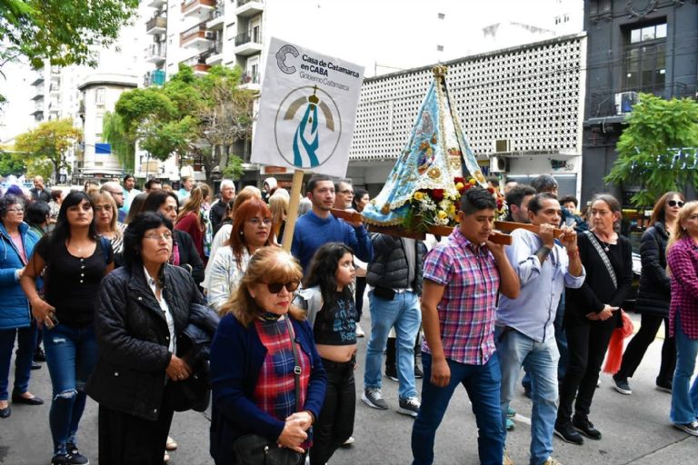 La imagen de la Madre Morena fue trasladada a pie por empleados de la Casa, acompañados por su familia, vecinos y devotos hasta la Parroquia Nuestra Señora del Valle, en donde se sumó a la gran caminata que se concretó en los alrededores del templo ubicado en el barrio porteño de Palermo.