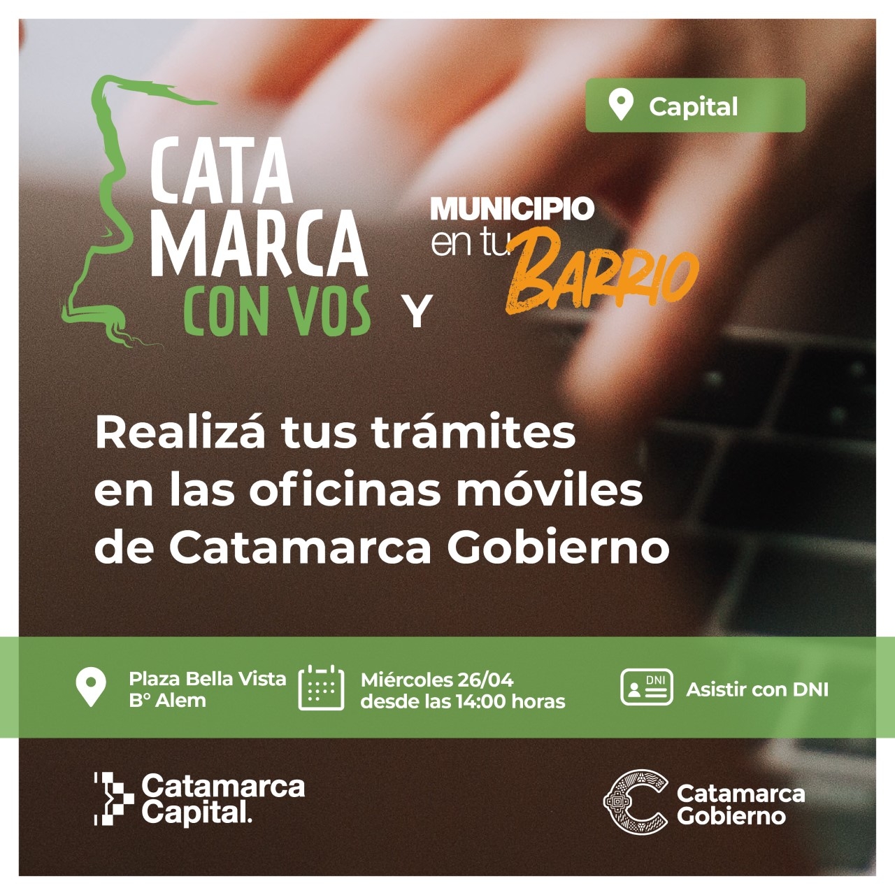 A través de móviles ubicados en puntos estratégicos, “Catamarca con Vos” en conjunto con “Municipio en tu Barrio” estarán presentes este miércoles 26 de abril, de 14 a 17 en la plaza Bella Vista, ubicado al Este de la ciudad Capital.