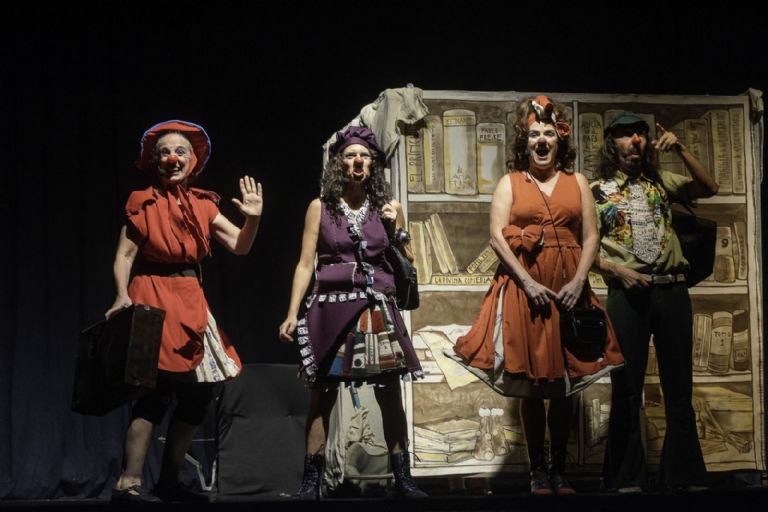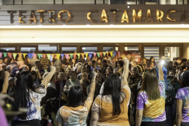 Tras el despliegue artístico en las calles del casco céntrico, pasadas las 20 hs arrancó la función inaugural de la Fiesta del Teatro con la presentación de la obra “Libros en la Mira”, del grupo cordobés Tres Tristes Tigres en la sala Julio Sánchez Gardel del Cine Teatro Catamarca, a la que asistió la comunidad teatral catamarqueña, estudiantes, adultos mayores del CIIC y público en general.