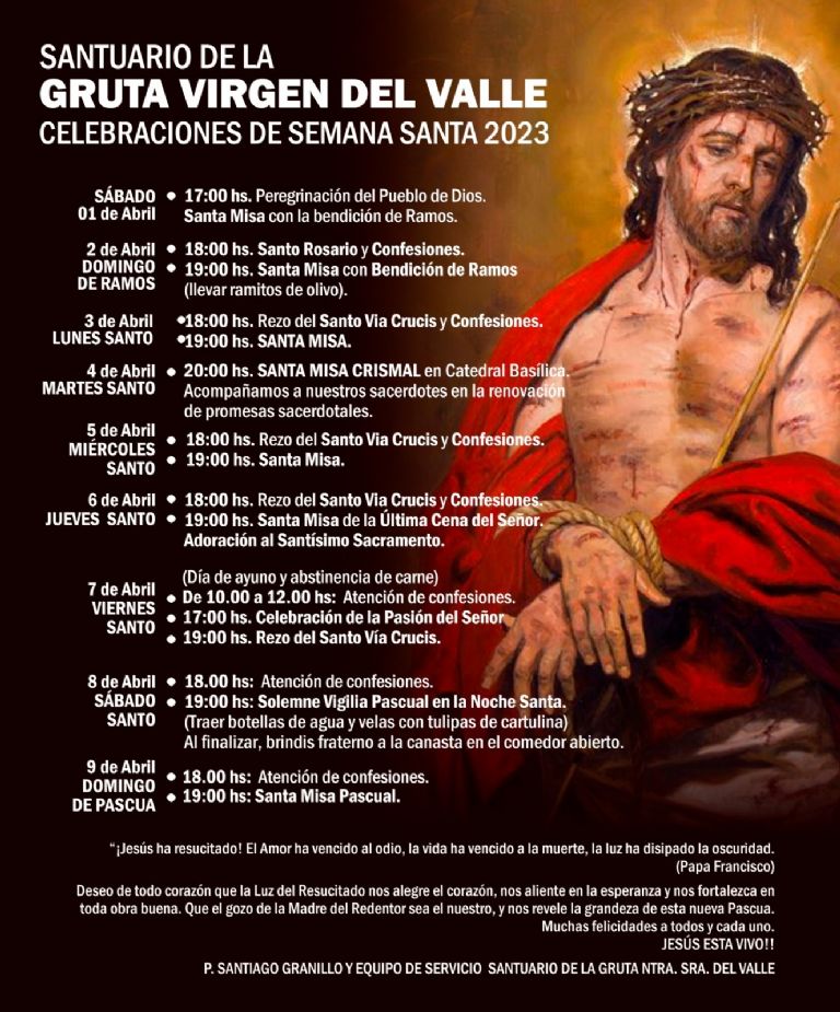 Celebraciones de Semana Santa en la Gruta de la Virgen del Valle