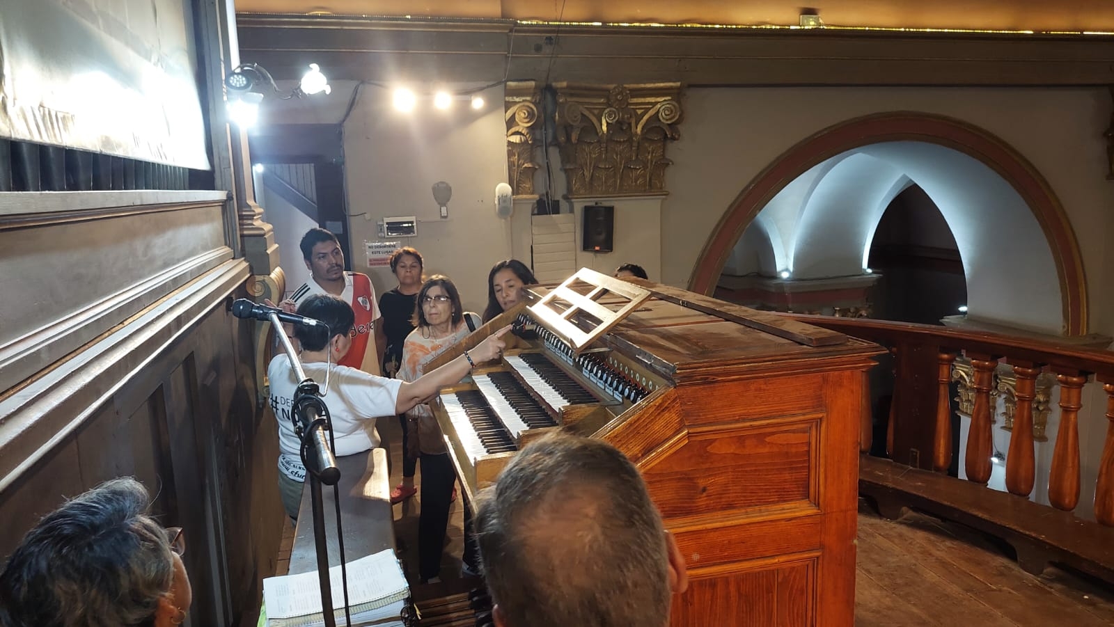 La escalera, con tres descansos, permite descubrir durante su trayecto rincones de sentida religiosidad, pero por sobre todo una majestuosa creación artística. Allí se podrá apreciar el espacio del Coro, donde aguarda el imponente órgano instalado en 1910, y gozar de una vista panorámica que permite apreciar más de cerca, las pinturas, los vitrales, el altar y todos los detalles de construcción y diseño en cada una de sus naves.