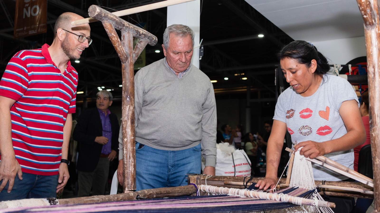 La posibilidad de ver a los artesanos trabajar con sus manos, conversar y conocer cómo es el proceso de su trabajo le da un valor agregado al encuentro. Paola Villagrán es una artesana textil, santamariana pero que vive en Capital. Participa de la feria vendiendo ponchos, mantas y caminos de mesa y además muestra desde su telar cómo es el proceso del tejido.