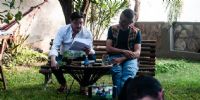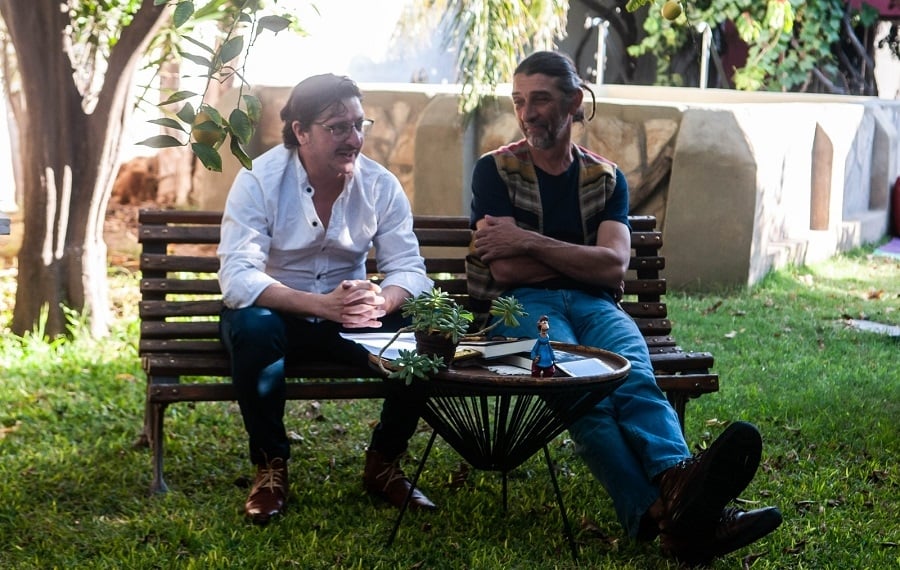 Y entonces sí, unos cuarenta minutos después llegar a ese patiecillo coqueto en el que la Naturaleza primaba, vi cómo tres o cuatro de quienes parecían organizadores (o amigos de los organizadores) movían sillas, almohadones, telas y banquitos alrededor de una mesita, ornada con una pequeña suculenta y una figurilla de unos veinte centímetros del mítico personaje animado Larguirucho, ése, sí, el de “hablá más fuerte…”; y detrás de la mesita con Larguirucho, en un banco de plaza antigua (amable, de madera), el autor del libro, Enrique Traverso; y a su lado otro escritor, tucumano según supe: Federico Soler, quien a la postre resultó ser el presentador de la cosa.
