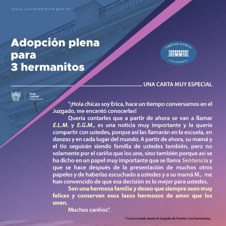 Fue la Dra. Erica Saccher, jueza de Familia N° 1, quién escribió la tan emotiva y humana carta.