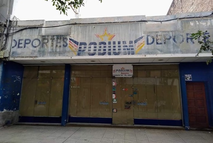 Como no se menciona "cerrado por refacción o remodelación", las vidrieras de la clásica tienda de deportes "Podium" ubicada en Peatonal Rivadavia permiten inferir que el histórico comercio, agobiado quizá por la situación económica del Pais, dijo basta luego de muchos de años de actividad en el rubro.