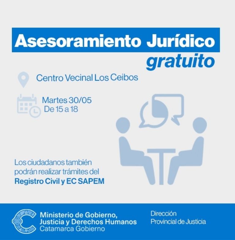 El organismo trasladará profesionales para realizar asesoramiento jurídico gratuito y servicios de mediación vecinal. También estarán presentes Defensa Civil, el Registro Civil y EC SAPEM a disposición de los vecinos.