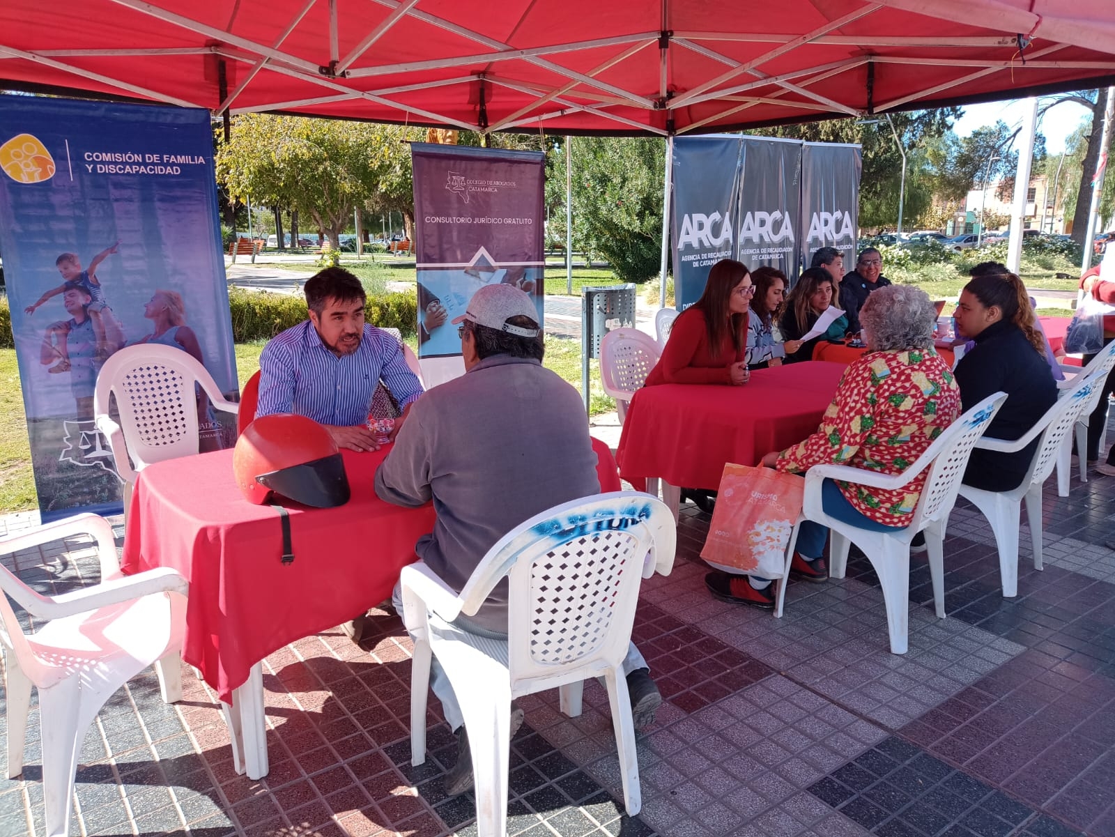Esta vez, y como sucedió en otros departamentos, el Consultorio estuvo en Tinogasta donde los letrados se apostaron en la plaza 25 de Mayo para asesorar a los vecinos. En horas de la tarde, la Comisión de Derechos Registral del Colegio conjuntamente con ARCA, ofrecieron una charla destinada a abogados y escribanos sobre los protocolos de acceso a los formularios de la plataforma de ARCA utilizados por estos profesionales en las áreas del Registro de la Propiedad, Catastro y Rentas. También se explicó cómo generar una boleta profesional a través del Sistema Boleta Digital del Colegio de Abogados.