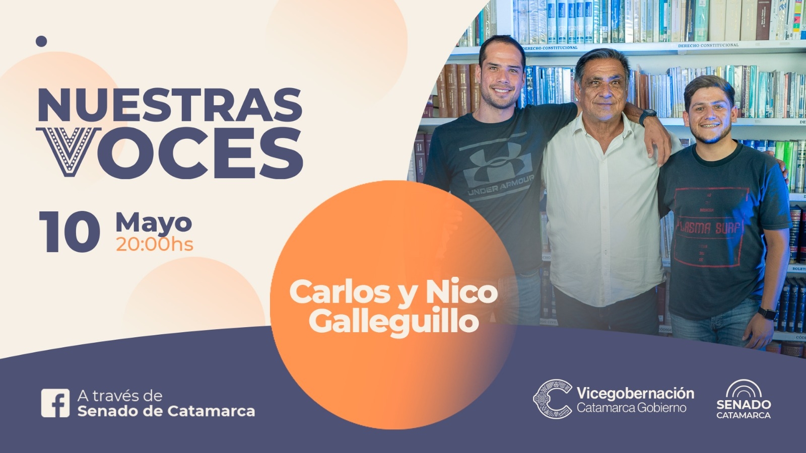 La tercera entrega del ciclo cultural Nuestras Voces, presentará este miércoles 10 de mayo a las 20.00 en la fanpage de Facebook de Senado, el canto de los artistas catamarqueños Carlos y Nico Galleguillo, con el acompañamiento de Ariel Maldonado, ofreciendo su música y su voz como el cálido regalo de todo lo que se hace y disfruta en familia.