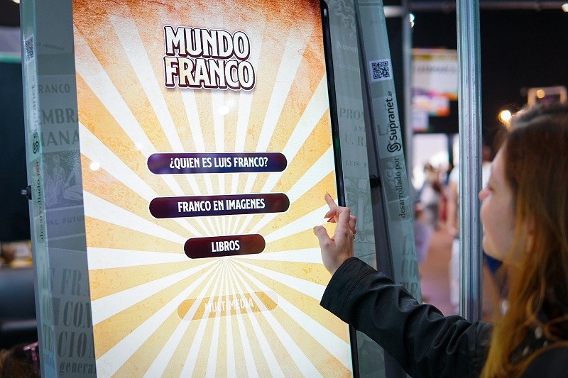 Este año, al ser el eje de la presencia catamarqueña en la Feria Internacional del Libro el escritor belicho, desde la Dirección de Bibliotecas y Archivo se ideó una plataforma digital –que se puede visualizar en un gran tótem y también en tablets que están a disposición de los visitantes- que permite una inmersión total en el mundo literario de Luis Franco.