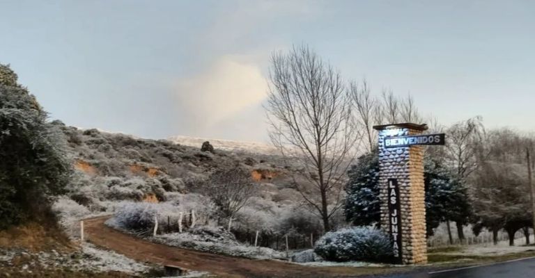 Este martes, la Villa Ambateña de Las Juntas amaneció con una temperatura de -3° y cubierta de nieve. La temperatura de hoy no superará los 8 grados.