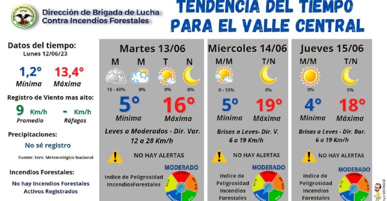 HOY: Para el día de hoy con cielo NUBLADO A PARCIALMENTE NUBLADO Por la mañana y Algo nublado por la tarde, con mayor presencia del sol, la temperatura máxima ascenderá solo a los 16°C y 5°C de Mínima con vientos entre LEVES A MODERADOS EN DIRECCIONES VARIABLES, durante la madrugada y parte de la mañana el Servicio Meteorológico Nacional anuncio una probabilidad de precipitaciones entre un 10 a 40% de precipitaciones principalmente en zona montañosa, en estos sectores seguramente serán de forma más solida.