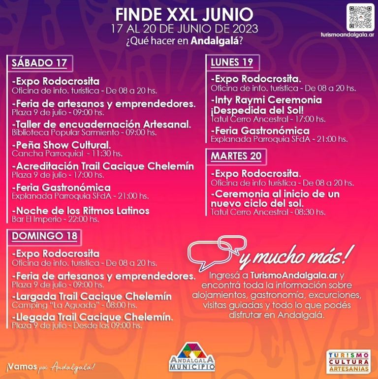 Desde la Municipalidad de Andalgalá, más precisamente la Secretaría de Turismo, informaron el cronograma propuesto para el fin de semana del 17 al 20 de junio.