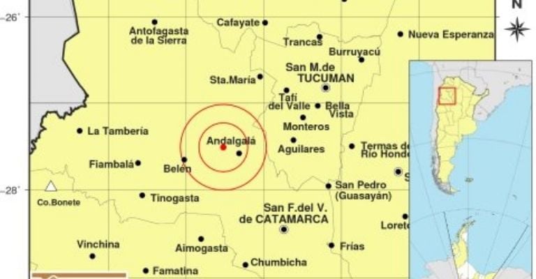 Epicentro: 129 km al NO de San F. Del Valle De Catamarca; 152 km al SO de San Miguel De Tucumán; 22 km al O de Andalgalá -27.510 (lat) -66.520 (long)