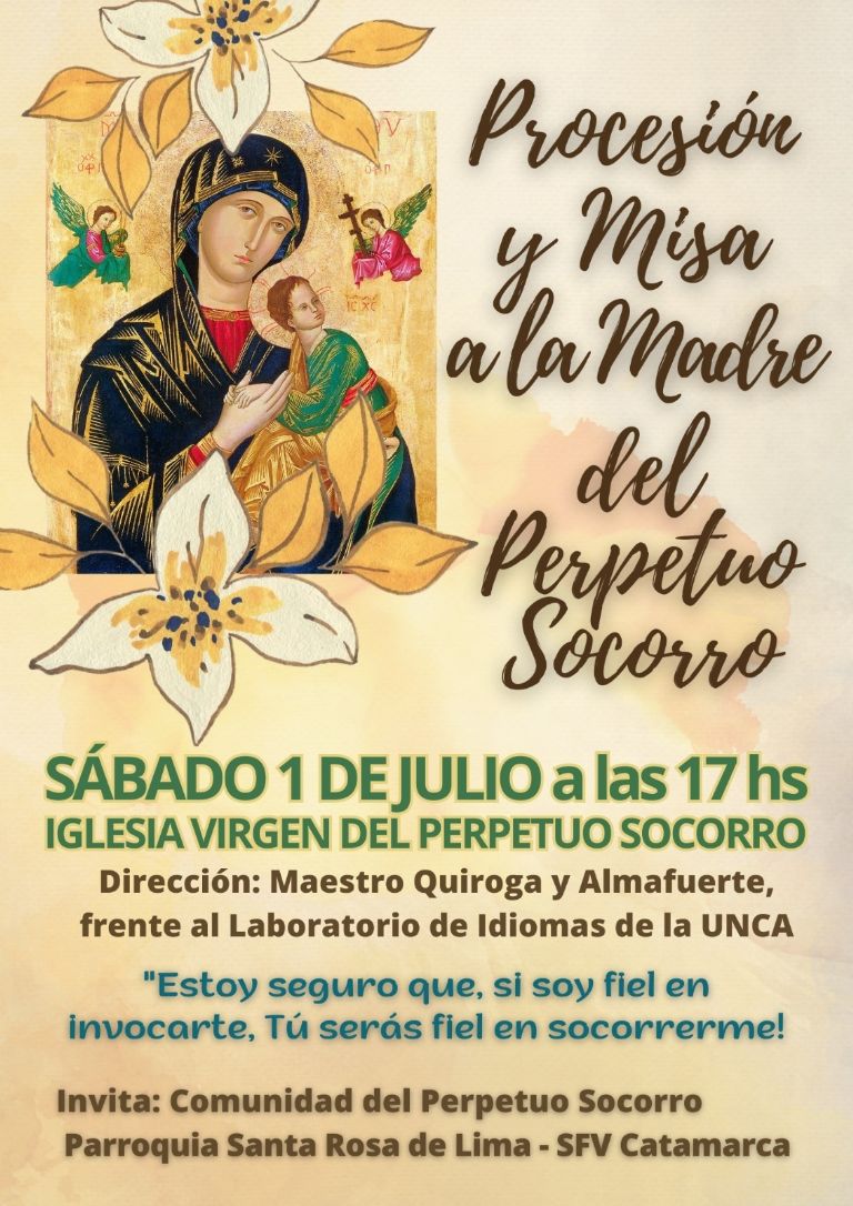 La comunidad de Nuestra Señora del Perpetuo Socorro invita a todos los fieles devotos de esta advocación de la Virgen María, Madre del Redentor, a participar en la procesión y Misa, que se realizará el sábado 1 de julio a partir de las 17.00.