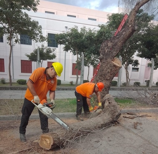En la tarde de ayer, y a pedido de las autoridades de la Universidad Nacional de Catamarca, la Dirección de Defensa Civil a cargo de Martín Castelli, llevó a cabo tareas de poda y corte de árboles de gran porte seco, el cual implicaba un riesgo para las personas que circulan diariamente por el sector.