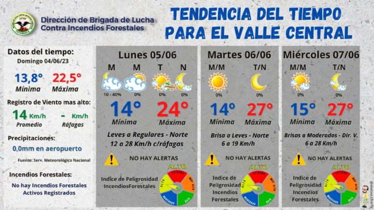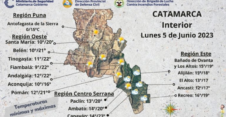 HOY: En el día de hoy tendremos en cielo PARCIALMENTE NUBLADO A ALGO NUBLADO, con vientos LEVES A MODERADOS, la temperatura máxima será de 24°C y 14°C de Mínima. Son muy bajas las probabilidades de precipitaciones por la mañana.