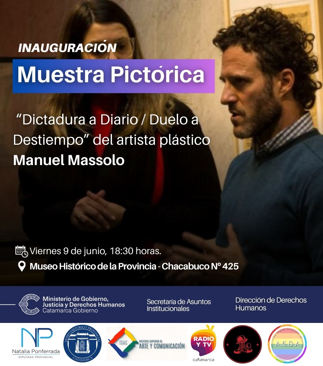 Organizada por la Dirección de Derechos Humanos, con el apoyo del Ministerio de Cultura, Turismo y Deporte, a través de la Dirección de Patrimonio y Museos, esta muestra se podrá visitar hasta el 16 de junio, de lunes a viernes de 8 a 13 y de 15 a 20 horas; sábados y feriados de 9 a 13, en el Museo Histórico Provincial, Chacabuco 425. La entrada es gratuita.
