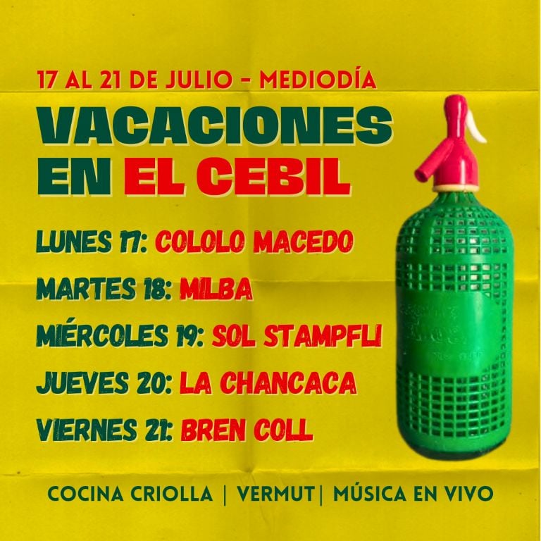Durante las vacaciones de invierno, el espacio cultural El Cebil (Esquiú 781) anunció un ciclo que combina música y gastronomía local durante los mediodías.