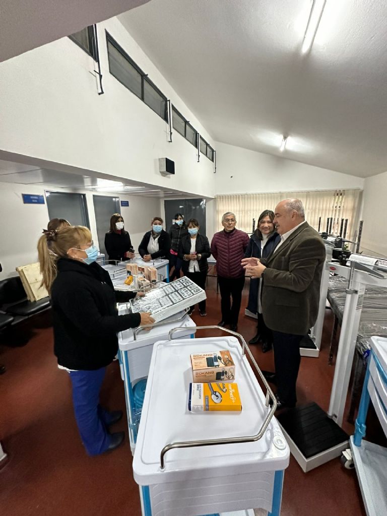Se trata de 10 camillas clínicas fijas reforzadas, 2 camillas de consultorio reforzadas para tratamiento a la obesidad, 4 balanzas, 10 carros de curaciones, 10 termómetros digitales, 5 tensiómetros aneroides con estetoscopio para adulto, 2 tablas de Snellen, 10 oxímetros de pulso y 10 estetoscopio para adultos.