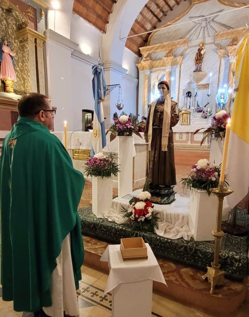 En la tarde del jueves 13 de julio, se celebró la Santa Misa durante la cual se bendijo la estola de vicuña, que luego se impuso a la imagen del Beato Mamerto Esquiú, en el templo de San José de Piedra Blanca, su tierra natal.