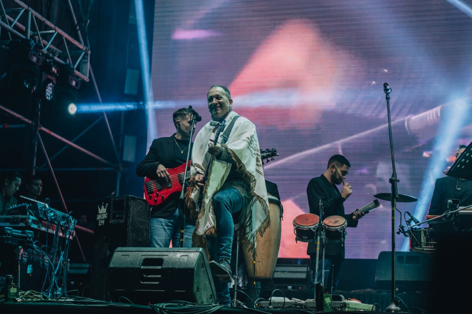 Antes de finalizar el show, la secretaria de Gestión Cultural, Daiana Roldán, obsequió un poncho catamarqueño a El Mago, quien lo recibió agradecido.