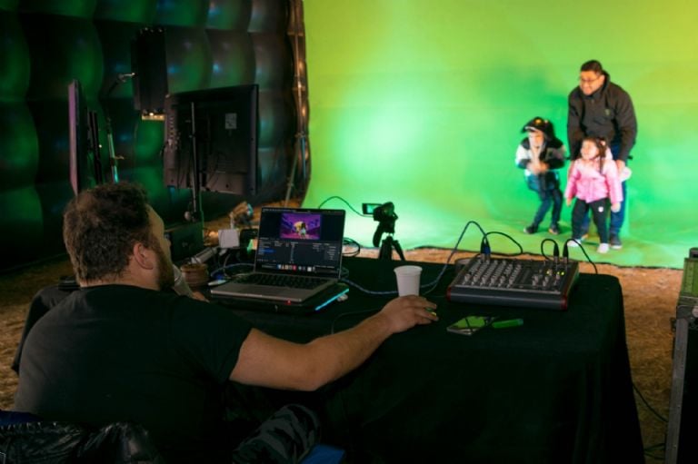 La intención es acercar el cine argentino a las personas y participar de este evento importantísimo, de la Fiesta del Poncho, en este Espacio INCAA, afirma el técnico Martín Califano, a cargo de los controles que llevan a cambiar mágicamente de escenario a quienes se acercan a participar. Además, agregó que muchos chicos se acercan y preguntan cuáles son los equipos que tienen y quieren saber cómo funciona esta técnica.