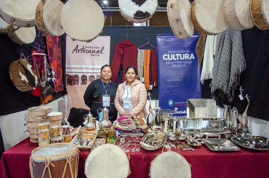 Verónica Chinuri Benitez, de la asociación Comunidad Indígena Colla Unidas, vino en representación del mercado salteño. Ella es oriunda de San Antonio de los Cobres y trajo sus trabajos realizados con alpaca y metales nobles. También se exponen instrumentos como bombos y cajas y textiles en llama y oveja, tapices y los clásicos ponchos salteños.