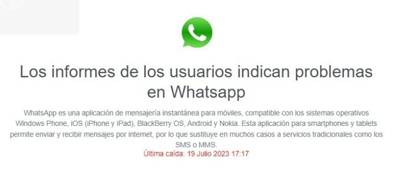En pocos minutos, el sitio registró alrededor de 18670 quejas de usuarios. El 52% tenía problemas para enviar mensajes, mientras que 44% tenía inconvenientes con la aplicación, y un 4% con el sitio del servicio de mensajería.