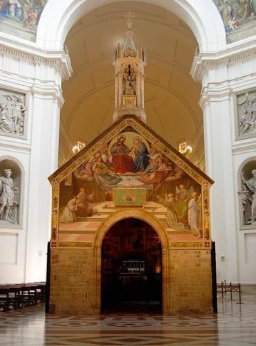 La concesión de la Indulgencia de la Porciúncula se dio en 1216, cuando San Francisco partió para Perusa junto con el hermano Maseo para ver al Papa Honorio III. Una noche anterior el mismo Cristo y la Virgen, rodeados de ángeles, se le habían aparecido en la capilla de Santa María de los Ángeles en Asís.