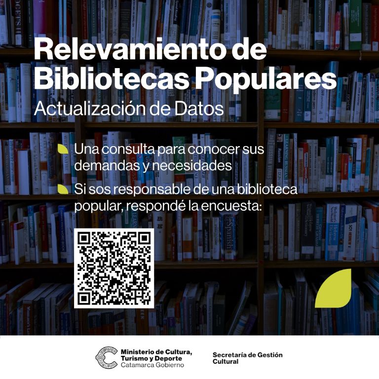 La Dirección de Bibliotecas y Archivo, dependiente de la Secretaría de Gestión Cultural del Ministerio de Cultura, Turismo y Deporte, lanzó un relevamiento destinado a las Bibliotecas Populares de Catamarca para actualizar sus datos y, al mismo tiempo, conocer sus nuevas demandas y necesidades a fin de poder seguir acompañando la tarea que estas instituciones cumplen en sus localidades.